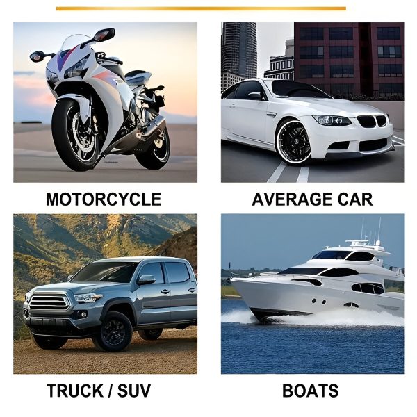 Használja a CARCOAT-ot autókon, hajókon, motorkerékpárokon, lakóautókon, ATV-ken és még sok más járművön. Biztonságos minden felületen, beleértve a festéket, a műanyagot és az üveget is.