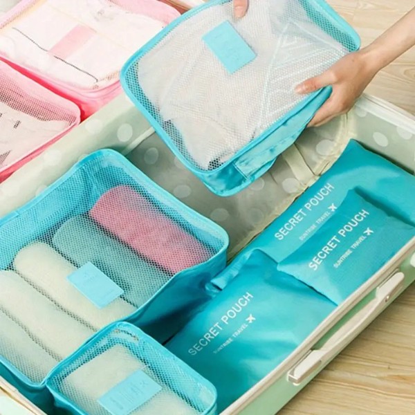 6 x Utazási Rendező Táska (3 cipzáras hálós táska + 3 cipzáras tasak)