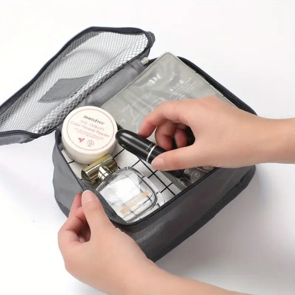A tartós, vízálló anyag biztosítja, hogy piperecikkei és kozmetikumai biztonságban és szárazon maradjanak. A kis cipzáras táskák tökéletesek smink, krémek vagy bármilyen folyékony tárgy számára, amelyeket helyben kell tartani anélkül, hogy szivárognának a táskájába.