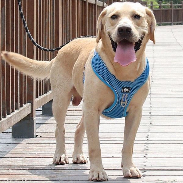 Az állítható fényvisszaverő öv és póráz puha, kényelmes és légáteresztő hálós szövetkialakítással rendelkezik, amely fokozza kedvence viselési élményét.