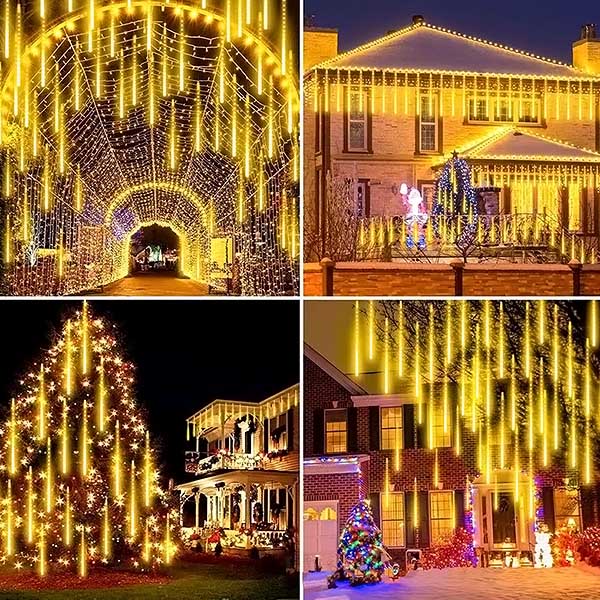 Meteor zuhany hatás romantikus esztétikával: Led-es meteorzuhany fények, minden izzó fénye egymás után kigyúl és kialszik, gyorsan, akárcsak a meteorzápor vagy a hulló hó az éjszakai égbolton, gyönyörűen.