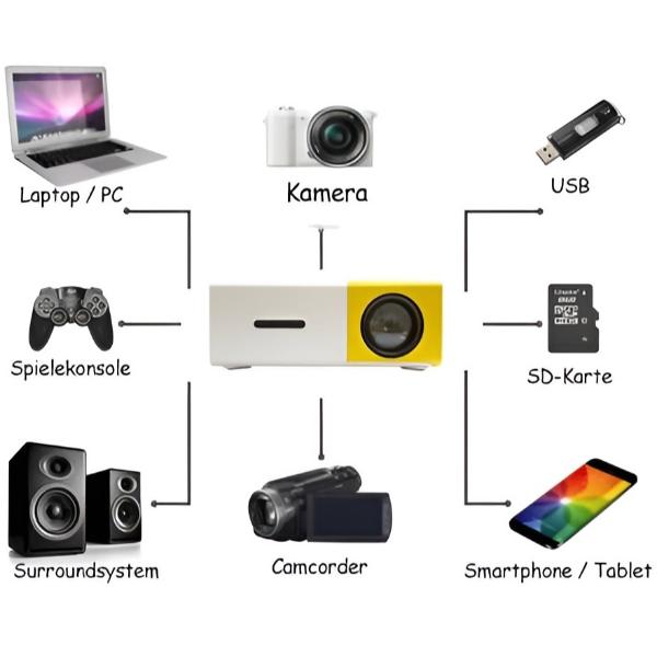 Több porttal, mint például USB, HDMI és AV, ez a kivetítő biztosítja a szórakozást, függetlenül attól, hogy milyen eszközt használ.