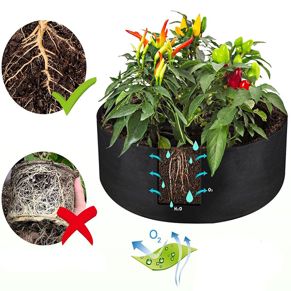 A légáteresztő filcanyag lehetővé teszi a felesleges víz elvezetését a falakon keresztül, és levegőt juttat a gyökerekhez – megelőzve ezzel a túlöntözést és a gyökérrothadást, amely a tömör műanyag cserepekben elpusztítja a növényeket. A filcanyag szilárdságban és tartósságban felülmúlja a hagyományos nem szőtt ültetőzsákokat, és jobban szabályozza a talaj hőmérsékletét, mint a terrakotta vagy műanyag edények.