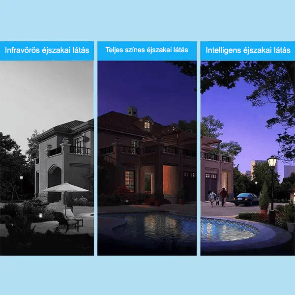 A kamera 3 széles látószögű infravörös lámpával és 4 fényes LED-del rendelkezik, amelyek színes videókat tesznek lehetővé nappal és éjszaka egyaránt.
