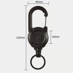 A belső rugós-racsnis mechanizmus minden alkalommal simán visszatekeri az acélkábelt – nincs kézi visszatekerés, nincs gubancolódás, nem lóg a kábel. A rugós karabiner kevesebb mint 3 másodperc alatt rögzíthető bármilyen övbújtatóhoz, táskapánthoz vagy nadrágzseb széléhez, és mozgás közben sem csatolódik ki.
